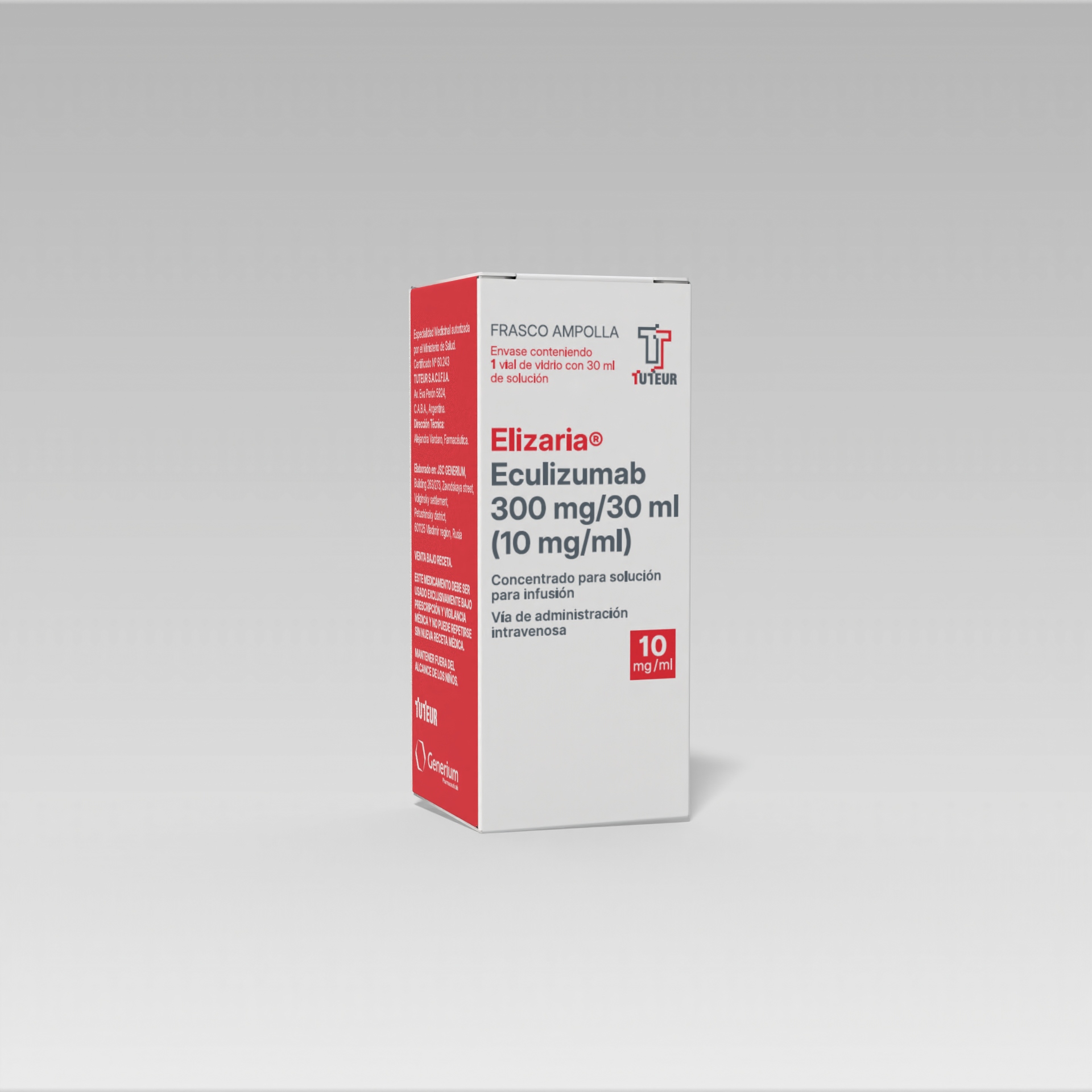 ELIZARIA® /ECULIZUMAB 300 mg: Envase conteniendo 1 vial de vidrio con 30 ml de solución.