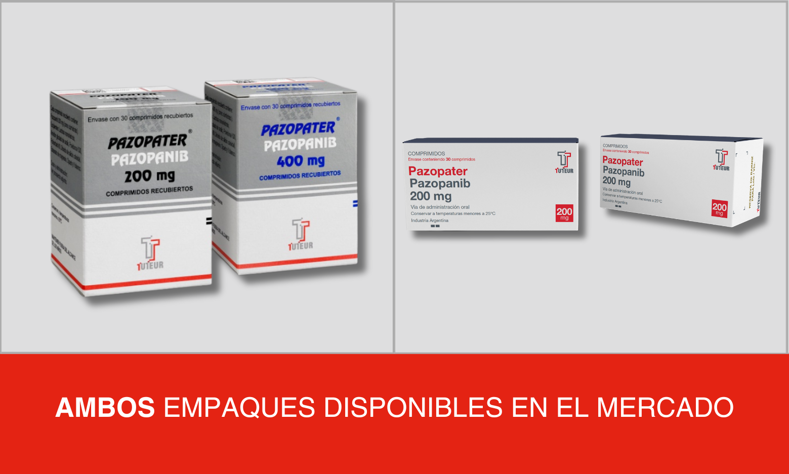 PAZOPATER® 400 mg: envases conteniendo 30 ó 60 comprimidos.